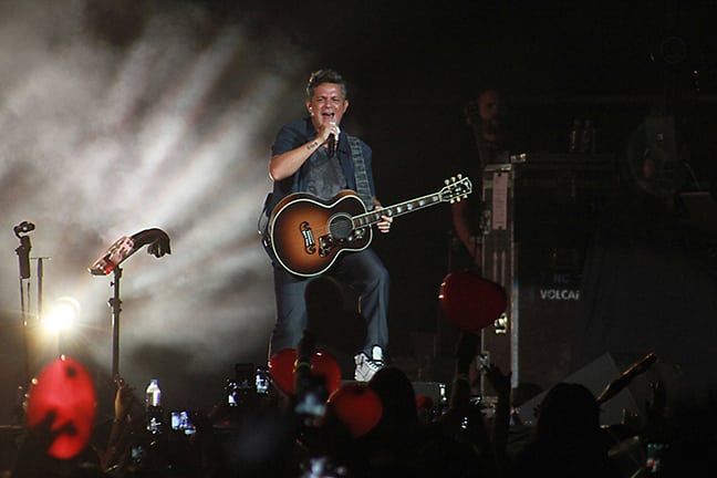El cantante bajo los acordes de su guitarra animó la noche que pintó de lo más romántica.Las notas de El corrido de Monterrey fue el preámbulo al concierto que inició pasadas las 21:00 horas con “Deja que te bese” y le siguieron “Desde Cuando” y “Quisiera Ser”.