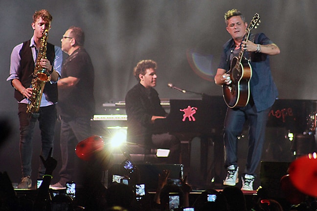 La calidad vocal de Sanz, y un excelente juego de luces robóticas y pantallas gigantes que conforman su espectáculo,terminaron por conquistar a la audiencia que se olvidó del mal tiempo ante el embrujo musical del artista.