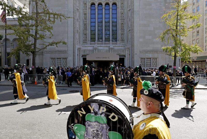 Meryl Streep no lloró ante su féretro, ni Rivers se libró de la elegía, que corrió a cargo de la estrella de la radio Howard Stern. Pero todo apunta a que la humorista hubiera quedado satisfecha de su funeral (aunque probablemente dijera lo contrario con un chiste ácido). La ceremonia fue «como poco, irreverente», dijo en un tweet el presentador de radio y televisión Billy Bush, que aseguró que a Rivers «le hubiera encantado» y que la definió «el mejor funeral posible». El programa que recibieron los asistentes estaba repleto de sus frases más famosas. El Coro de Hombres Gay de Nueva York cantó «What a Wonderful World» y clásicos de musicales como «Big Spender» (de «Sweet Charity») o «There Is Nothing Like a Dame» (de «South Pacific»). La cantante de Broadway Audra McDonald –ganadora de seis premios Tony- interpretó la canción «Smile» y Hugh Jackman también ofreció un número musical. Hablaron su hija Melissa, su amiga Margie Stern, la columnista Cindy Adams y la presentadora de televisión Deborah Norville. Sonaron las gaitas de la banda de la Policía de Nueva York, que cerraron la ceremonia tocando «New York, New York» a la salida del templo.
