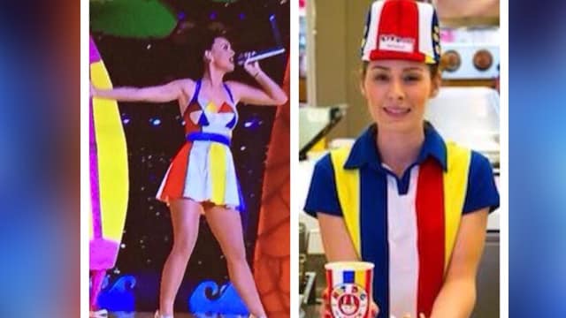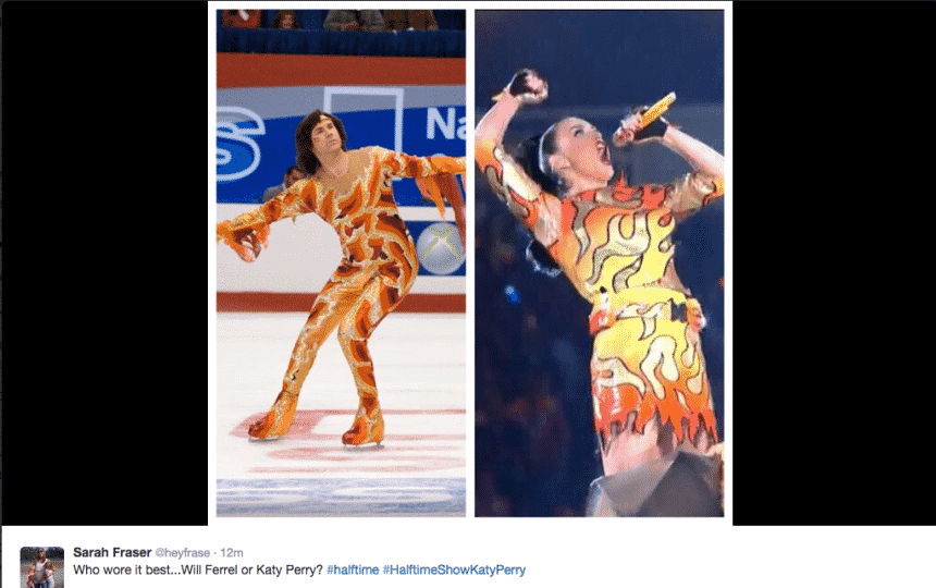 Katy Perry recibió buenos comentarios de la prensa por su actuación en el espectáculo del medio tiempo del Super Bowl en su edición 49, sin embargo el público en redes sociales no pudo evitar caer en la tentación de hacer divertidos memes por su colorido vestuario.