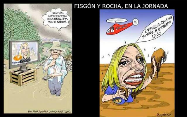 Pero no sólo ha sido tema para tuiteros, también reconocidos caricaturistas de México han hecho imágenes de Laura en donde se plantea la acusación de Proceso que acudió a Guerrero sólo a lucrar con el dolor de los damnificados para su programa.